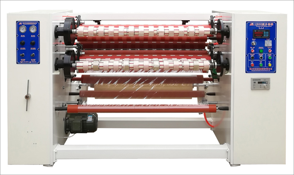 適用范圍:適用于各類透明封箱膠帶、印字印刷封箱膠帶半成品母卷的分條加工